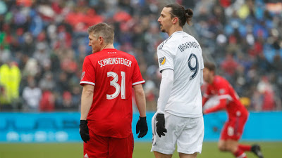 ไปฟังคำพูดของ ซลาตัน เมื่อเจอหน้ากับ ชไวน์สไตเกอร์ เพื่อรอซ้อมกับทีมรวมดาราเมเจอร์ลีก โดยการทักทายของ อิบรา เรียกว่ากวนส้นเท้าจริงๆ